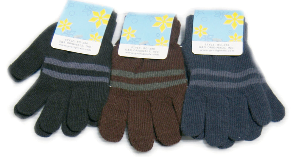 NEW! Boys Knit Glove. Striped Pattern. Assorted Colors Per Dozen Pack. Size: 4-7 yrs. - Price Per Dozen.