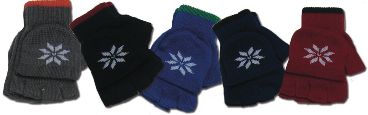 Boys 4-7 yrs. Acrylic Glove-Mitt with Snowflake Design. Assorted Colors. - Price per Dozen