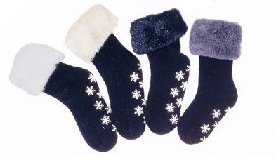 ~~PRICE BUSTER~~ Girls 7-14 Years, Chenille Sock with Assorted Lurex Fur Cuff and Snowflake Gripper Sole. - Price per Dozen