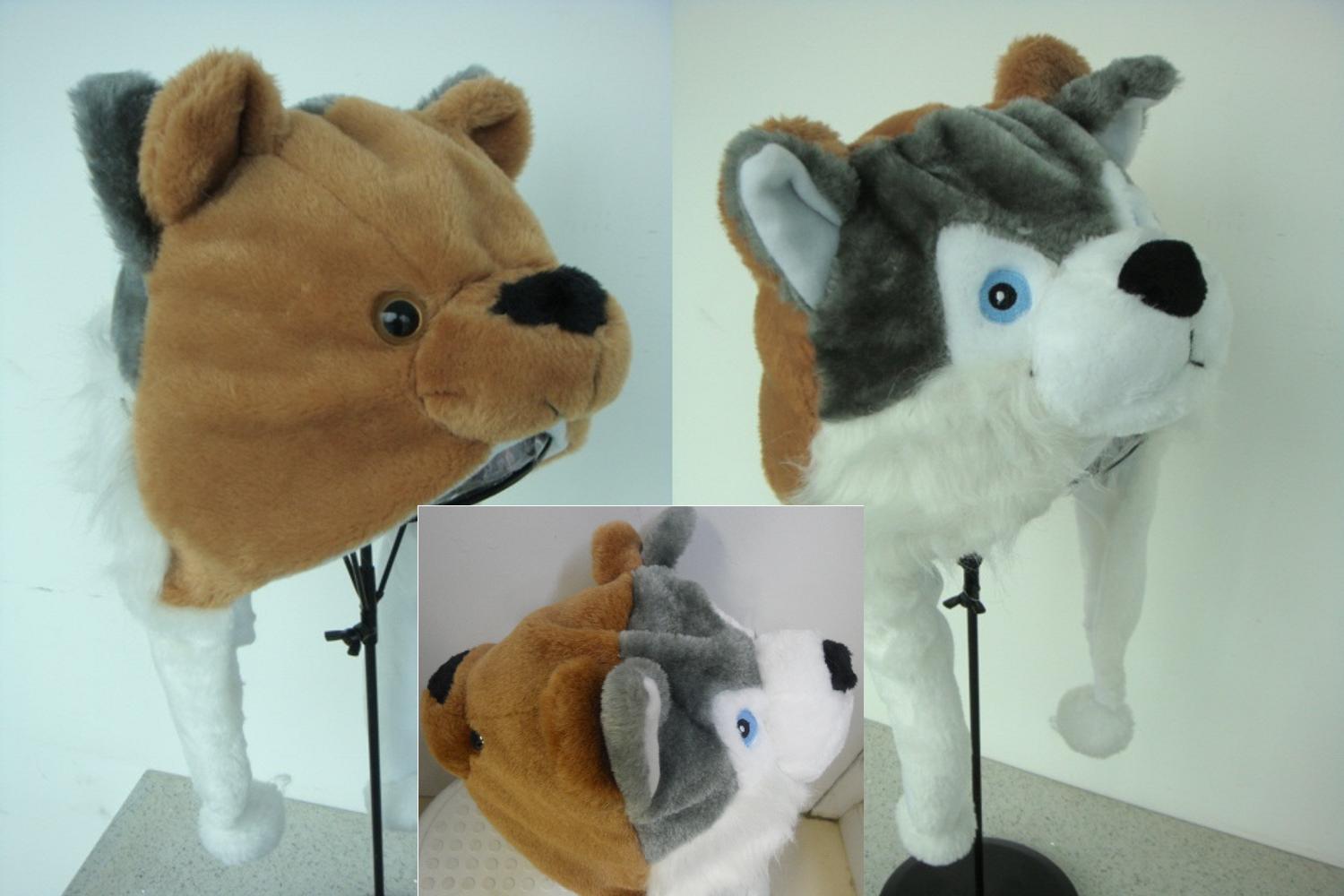 Faux Fur Double Faced Animal Hat: Wolf and Bear. Short Ear Flap w/ Fleece Lining. - PRICE PER 60 PC