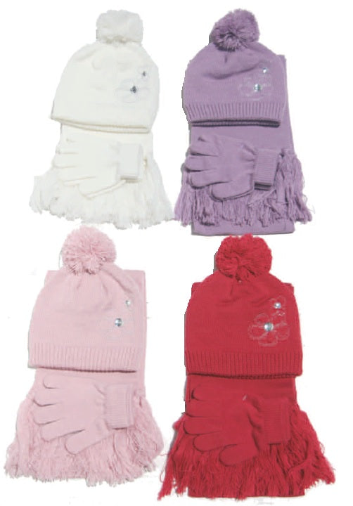 Girls 3 Piece Set. Glove, Scarf, & Hat - Price Per Dozen