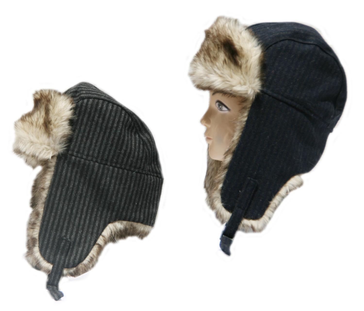 NEW!!! Adult Wool Striped Aviator Hats w/ Fauz Fur Lining. - Price Per Dozen.
