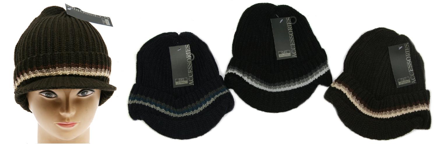 Adult Striped Visor Knit Hats. Assorted Colors Per Dozen Pack. - Price Per Dozen.