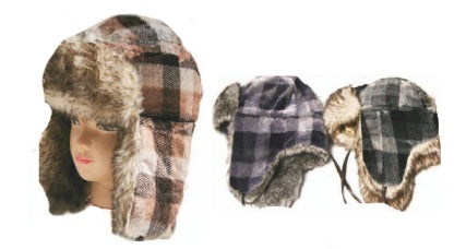 NEW!!! Ultra Soft Plaid Aviator Hat w/ Faux Fur Lining. Colors: Black, Brown, Purple. - Price per Dozen
