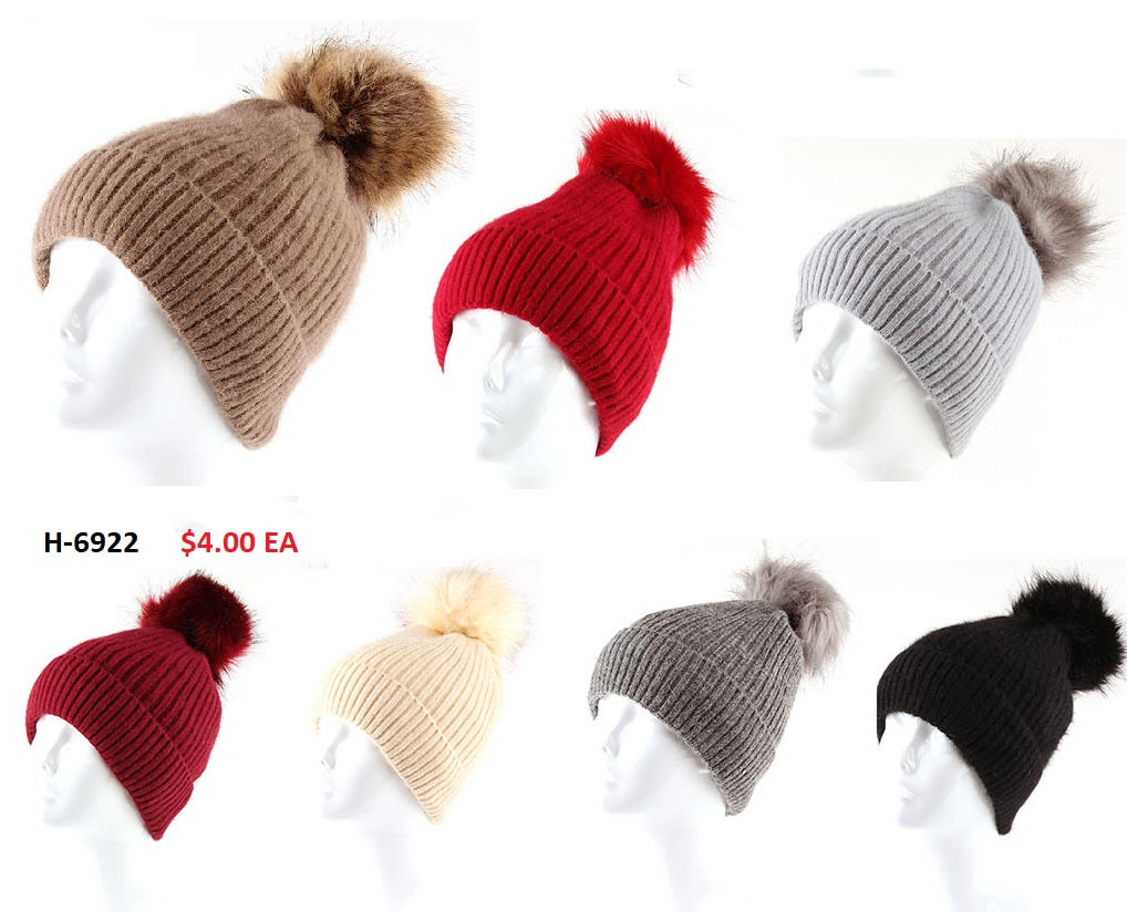 Girls 4-7 Winter Knit Fuax Fur Pom Knit Hat - Price Per Dozen: