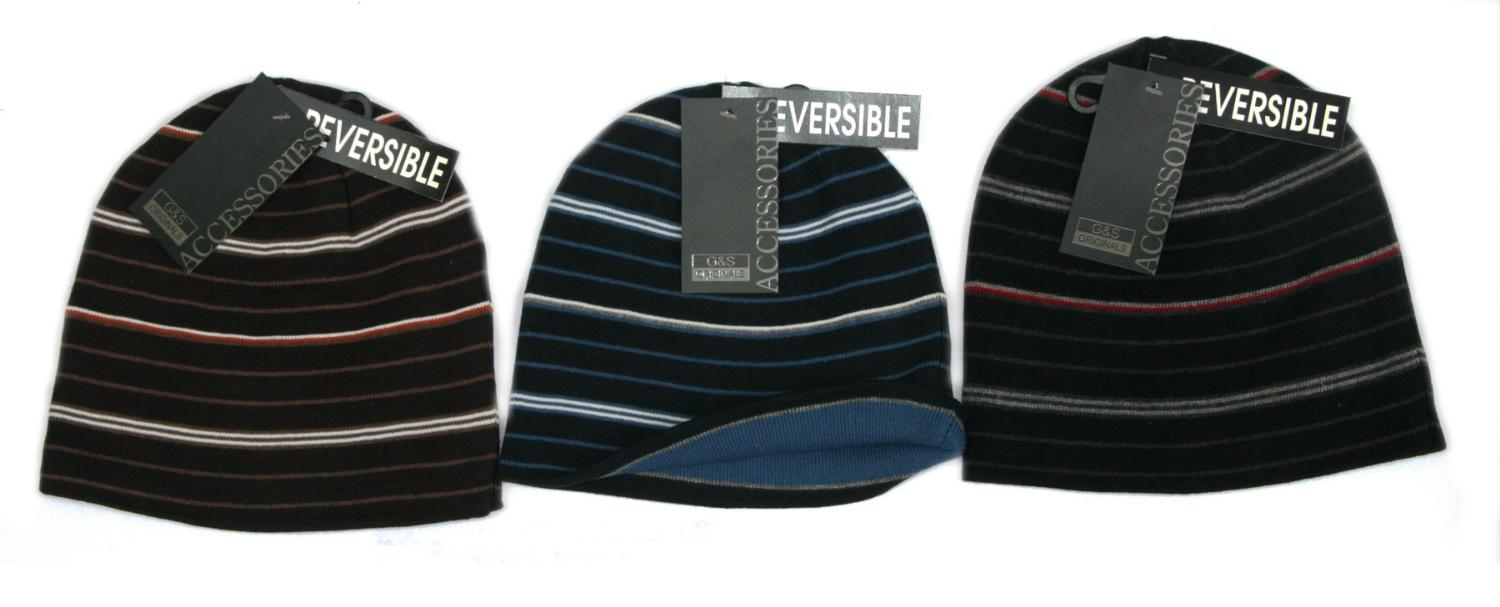 NEW!!! Men's Reversible Cotton Knit Hats. Assorted Colors Per Dozen Pack. - Price Per Dozen.