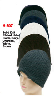 Solid Knit Ribbed Hats. Assorted Colors Per Dz Pack: Black, Navy, Charcoal, White and Brown. - Price per Dozen