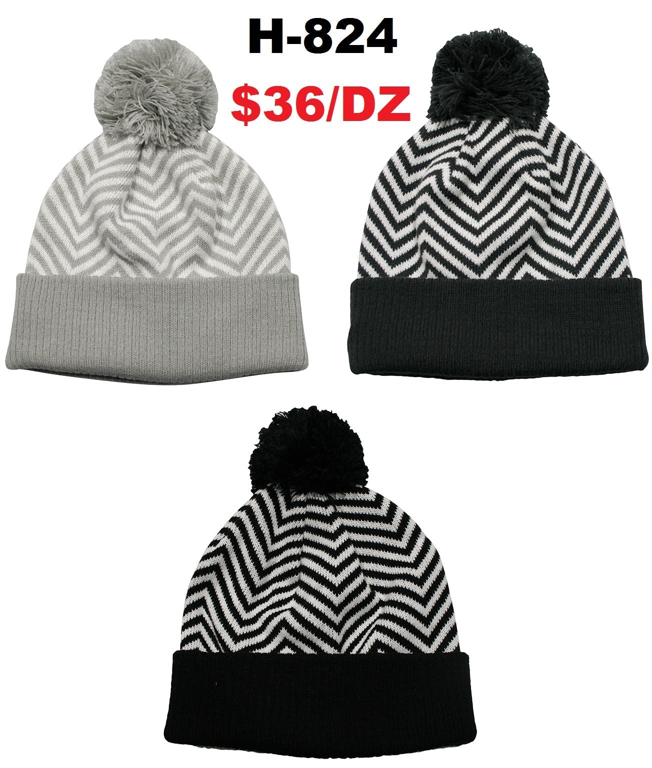 NEW ARRIVAL Ladies Winter Knit Acrylic Fashion Pom Pom Knit Hat - 3 Assorted Colors per dozen pack. - Price Per Dozen