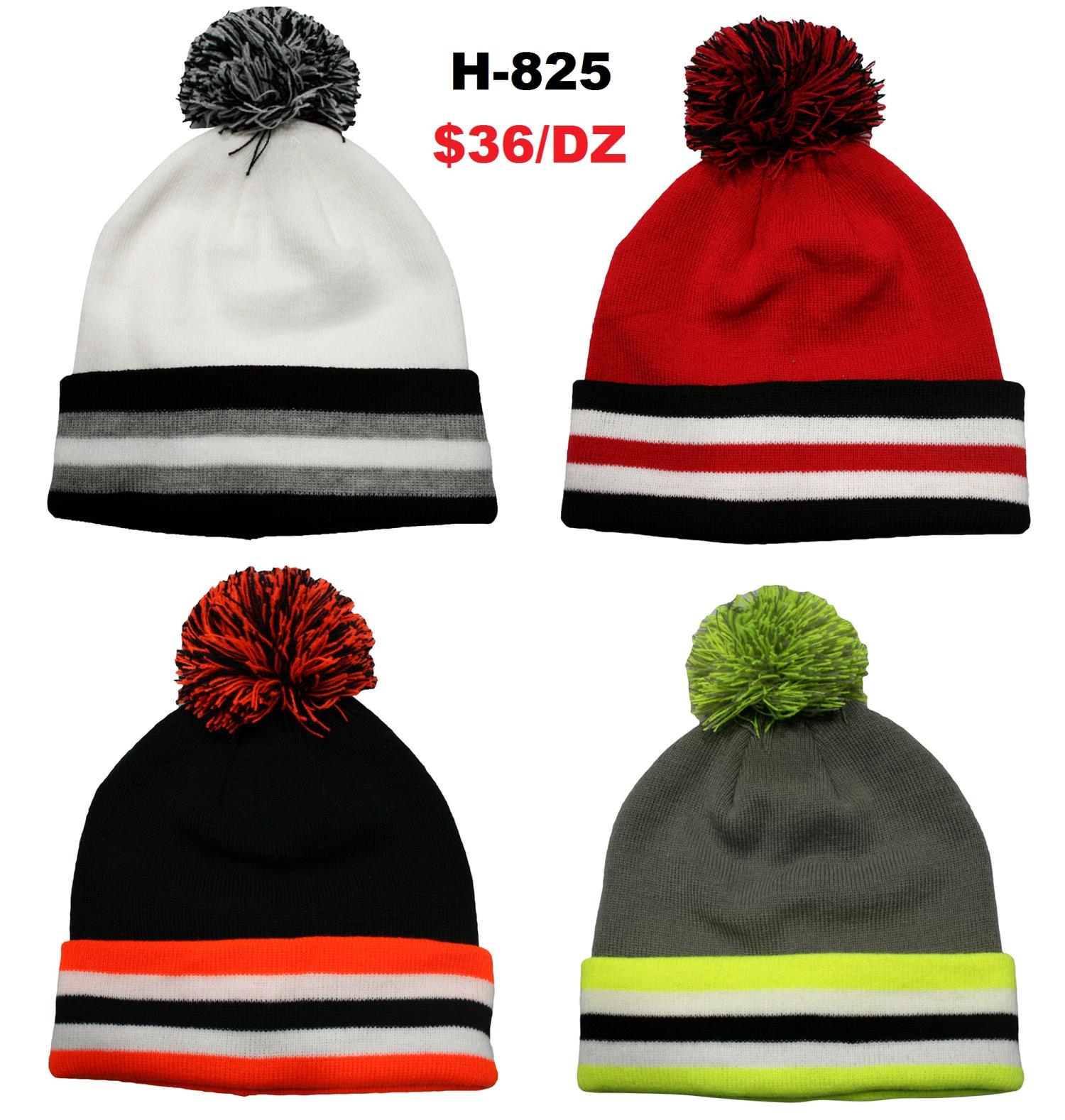 NEW ARRIVAL Men's Winter Knit Acrylic Fashion Pom Pom Knit Hat - 4 Assorted Colors per dozen pack. - Price Per Dozen