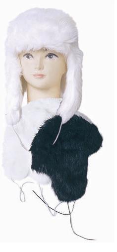 Faux Fur Helmet with Ear Flaps. Satin innercap. Colors: Black and White. - Price per Dozen