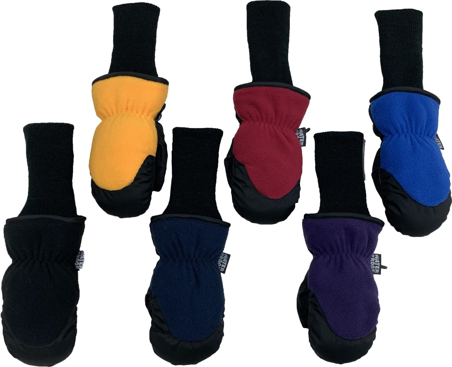 Toddler 2-4 Yrs. P-fleece, Mitten, Waterproof, cuff, Assorted Colors. Mix and Match with Toddler Fleece Helmet w/ Velcro Closure. - Price per Dozen